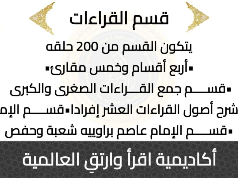 أكاديمية اقرأ وارتق العالمية بها العديد من الأقسام والمقارئ والمدارس
