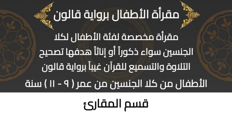 مقرأة الأطفال برواية قالون مقرأة مخصصة لفئة الأطفال لكلا الجنسين سواء ذكوراً أو إناثاً هدفها تصحيح التلاوة والتسميع للقرآن غيباً مع إعطاء دورات مت...