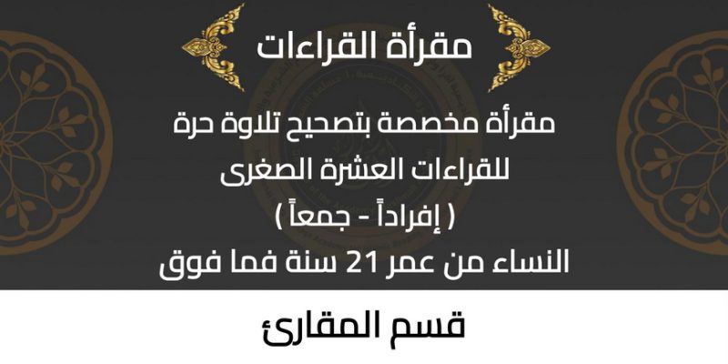 مقرأة القراءات مقرأة مخصصة بتصحيح تلاوة حرة للقراءات العشرة الصغرى ( إفراداً - جمعاً ) وذلك بصحبة نخبة من الشيخات المجازات بالقراءات العشر.